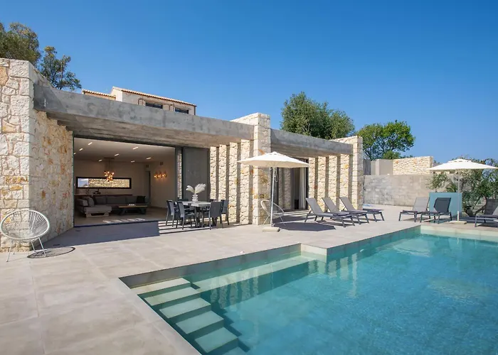 Die Villa in Acharavi liegt in ungefähr 15 Gehminuten Entfernung von Naturattraktionen wie der Lagune Antinioti. Zu den Bildungseinrichtungen in der Nähe gehört die Arena für Reitsport, die sich in unmittelbarer Nähe von der Villa befindet.